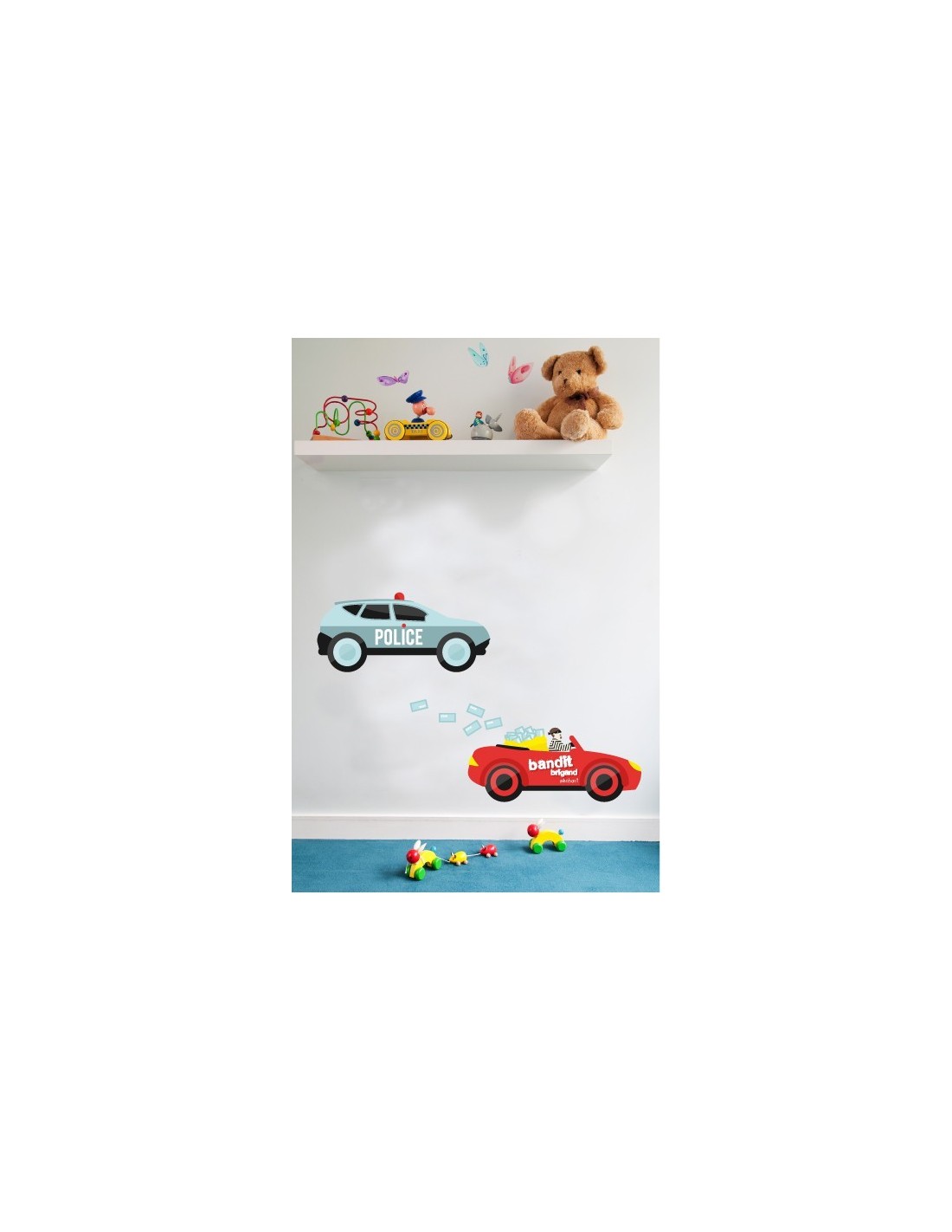 Attention ! Le bandit file à tout allure entre les voitures ! Il a braqué une banque et tente de s'enfuir avec l'argent ! Heureusement, votre bambin policier est là et va pouvoir le mettre derrière les barreaux ! Comment ? C'est à lui seul de l'imaginer...
